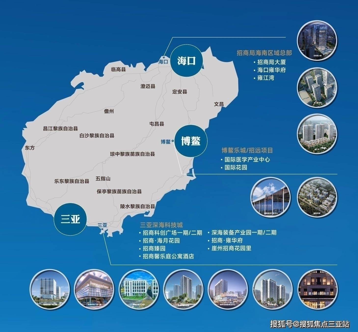招商局集团于2018年与海南省建立战略合作关系,并联合旗下招商蛇口在内的5家单位合资设立招商局海南开发投资有限公司。围绕“国家所需、地方所想、招商所长、公司所能”形成一个总部、两个园区、两个平台、多个业务的发展格局。